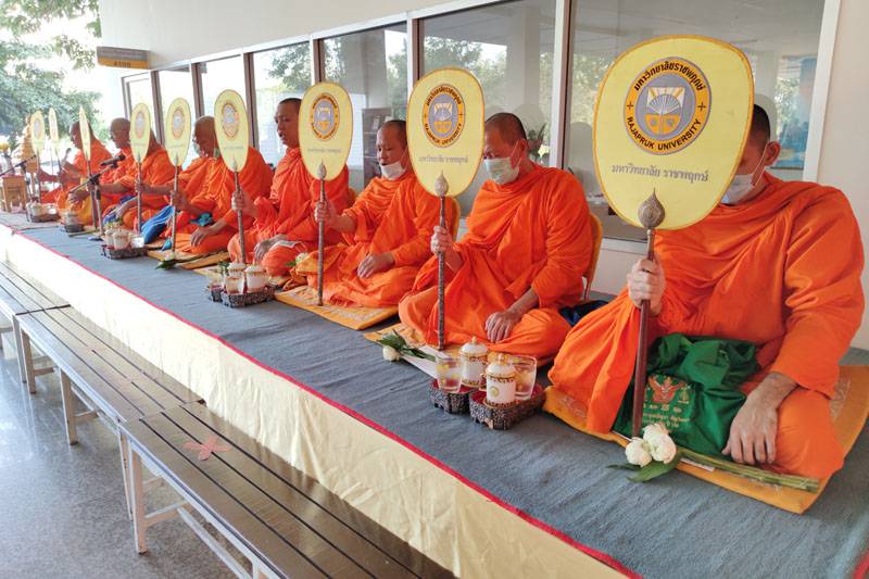วันศุกร์ที่ 13 พฤศจิกายน 2563 ฝ่ายพัฒนานิสิตจัดพิธีทำบุญตักบาตรประจำเดือนพฤศจิกายน โดยนิมนต์พระสงฆ์ จำนวน 9 รูป จากวัดซองพลู มารับบิณฑบาต โดยมี ดร.สันธยา ชูทรัพย์ รองอธิการบดีมหาวิทยาลัยราชพฤกษ์เป็นประธานในพิธี และมีผู้บริหาร อาจารย์ เจ้าหน้าที่ และนิสิต เข้าร่วมกิจกรรม ณ โถงอาคาร ดร. กมลชูทรัพย์