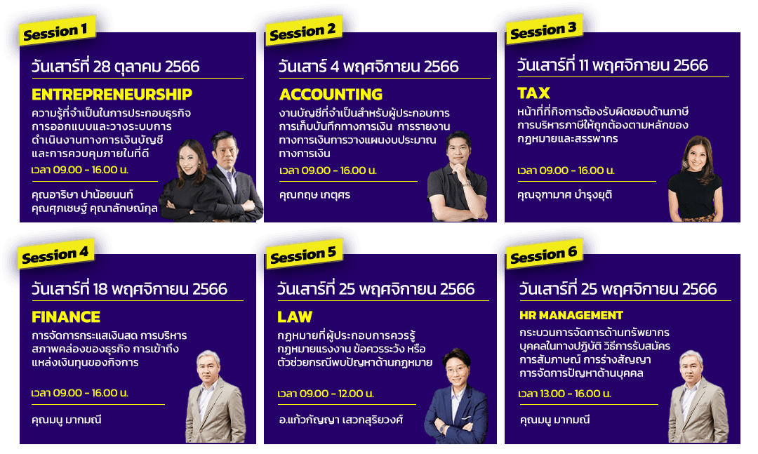 คอร์สระยะสั้นที่รวบรวมความรู้และทักษะที่จำเป็นสำหรับผู้ประกอบการรุ่นใหม่จากผู้มีประสบการณ์จริง รู้ลึก รู้จริง ช่วยแก้ปัญหาได้จริง