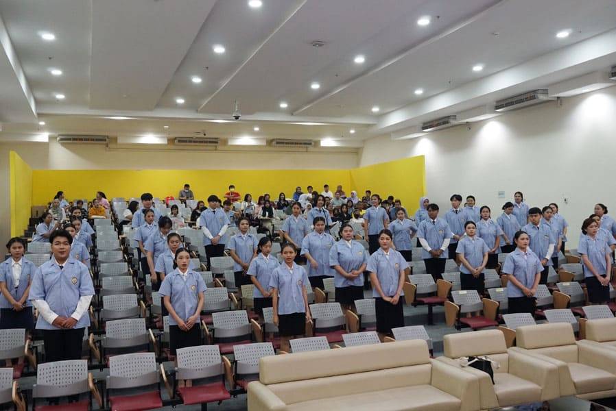 เมื่อวันอาทิตย์ที่ 19 มกราคม 2568 คณะสาธารณสุขศาสตร์ มหาวิทยาลัยราชพฤกษ์ จัดพิธีมอบเสื้อกาวน์ส่งเสริมและปลูกฝังคุณธรรม จริยธรรมในวิชาชีพการสาธารณสุขชุมชน โดย ผศ.ดร.เรวดี ศักดิ์ดุลยธรรม รองอธิการบดี เป็นประธานในพิธีมอบเสื้อกาวน์ให้แก่นิสิต ชั้นปีที่ 2 หลักสูตรสาธารณสุขศาสตรบัณฑิต สาขาวิชาสาธารณสุขศาสตร์ เพื่อเตรียมความพร้อมสำหรับปฏิบัติหน้าที่ในชุมชนและสถานบริการสาธารณสุข นอกจากนี้ยังได้รับเกียรติจาก คุณประกาศ เปล่งพานิชย์ นักวิเคราะห์นโยบายและแผนชำนาญการพิเศษ หัวหน้ากลุ่มงานพัฒนายุทธศาสตร์สาธารรสุขและหัวหน้ากลุ่มงานสุขภาพดิจิทัล สำนักงานสาธารณสุขจังหวัดปทุมธานี บรรยายพิเศษในหัวข้อ เส้นทางอาชีพและความก้าวหน้าในวิชาชีพสาธารณสุข ณ ห้องประชุม 4801 ชั้น 8 อาคาร ดร.กมล ชูทรัพย์ มหาวิทยาลัยราชพฤกษ์