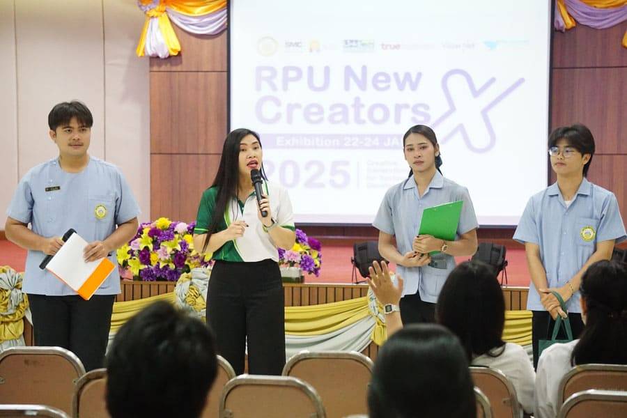 ภาพบรรยากาศงานแสดงนิทรรศการ RPU New CreatorX 2025 วันแรก วันที่ 22 มกราคม 2568 ณ ห้องประชุม 1503 อาคารเฉลิมพระเกียรติ มหาวิทยาลัยราชพฤกษ์ จังหวัดนนทบุรี ภายในงานมีนิทรรศการแสดงผลงานนวัตกรรม สิ่งประดิษฐ์ งานสร้างสรรค์ สื่อการเรียนรู้ และผู้ร่วมงานสามารถร่วมโหวตผลงานที่ชื่นชอบได้ตลอดทุกช่วงเวลา อีกทั้งพบกับกิจกรรมมากมายของเรา เช่น ภาพยนตร์สั้น Because of Love แข่งขันสร้างภาพด้วย AI บนมือถือ เทคนิคการนำเสนอสินค้าและแข่งขันการนำเสนอสินค้า และการแสดง Cover Dance