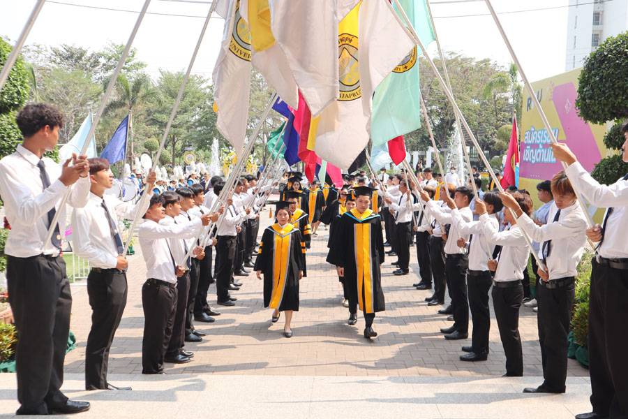 ภาพบรรยากาศการฝึกซ้อมใหญ่ พิธีประสาทปริญญาบัตร วันอาทิตย์ที่ 2 กุมภาพันธ์ 2568 ณ มหาวิทยาลัยราชพฤกษ์ จังหวัดนนทบุรี