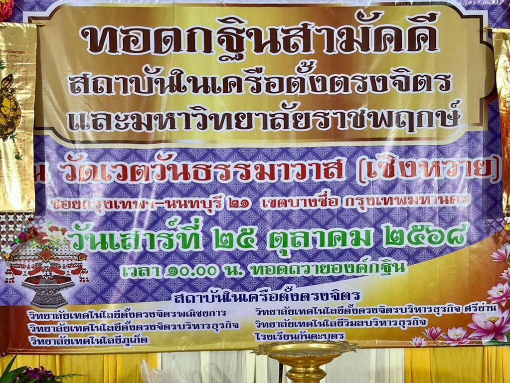 เมื่อวันเสาร์ที่ 25 ตุลาคม 2568 มหาวิทยาลัยราชพฤกษ์และสถาบันในเครือตั้งตรงจิตร โดย ดร.วิภาพรรณ ชูทรัพย์ ผู้รับใบอนุญาต ดร.อณาวุฒิ ชูทรัพย์ อธิการบดี และ ศ.ไชยยศ เหมะรัชตะ นายกสภามหาวิทยาลัยราชพฤกษ์ พร้อมด้วยผู้บริหาร คณาจารย์ เจ้าหน้าที่ ร่วมทอดกฐินสามัคคี ประจำปี 2568 ณ วัดเวตวันธรรมาวาส (เซิงหวาย) ซอยกรุงเทพฯ-นนทบุรี เขตบางซื่อ กรุงเทพมหานคร